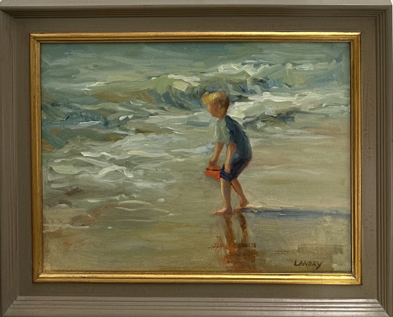gray frame with gold lip